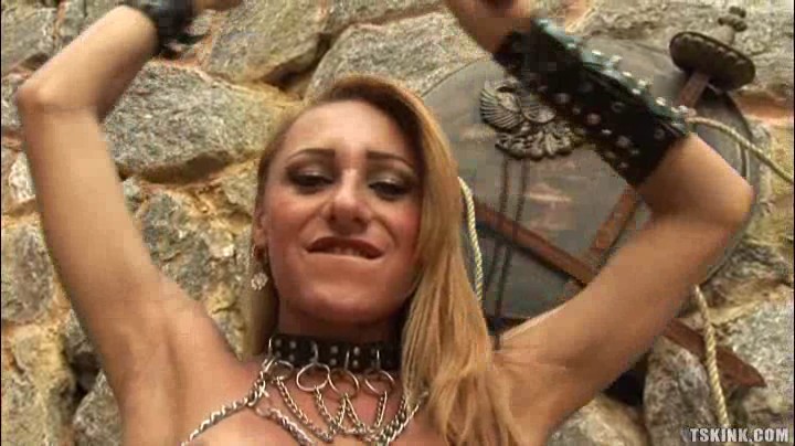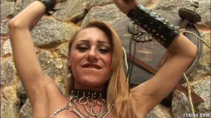 When Mylena couldn't find a willing playmate for the day she went into her playground by herself. She grabs a crop and begins to spank her own phat ass. She does a great job and her cock stiffens up at the ass abuse until she has to pull it out of her leather panties to stroke it.